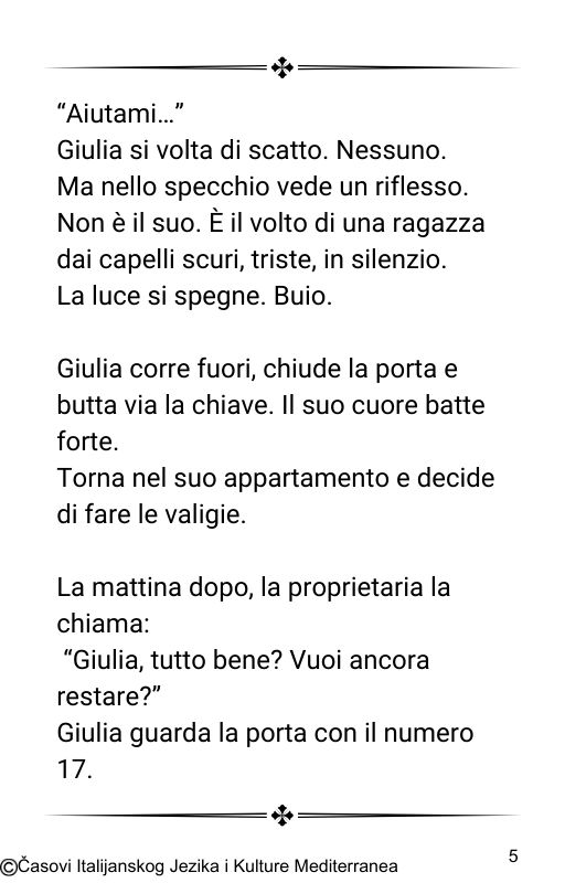 • 5 misterioznih priča: Uzbudljivi tekstovi pisani isključivo na italijanskom jeziku, prilagođeni tvom nivou.